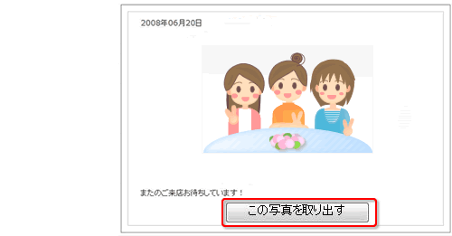 | 抽出された写真を掲載してよい場合は【この写真を取り出す】ボタンをクリックします。 |