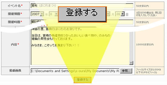 | Step 6 | 『イベントを投稿しました。』というメッセージが出たら投稿終了です。 |