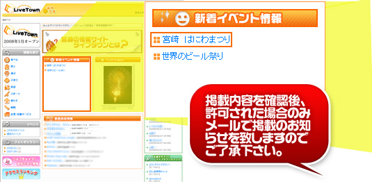 | ※掲載不可と判断された場合にはメールでのお知らせはありません。ご了承ください。 |