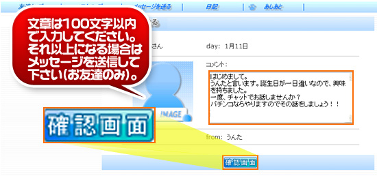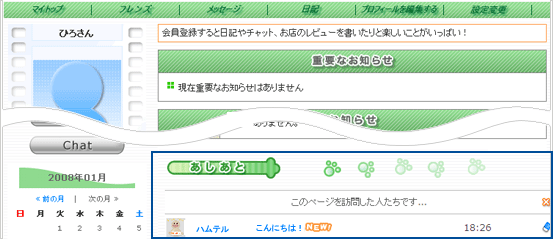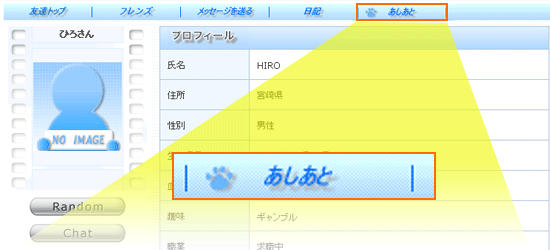 | あしあとは、お友達になりたい相手にメッセージを送ることが出来るので、ここからチャットに誘うことが | 出来ます。お友達を作る最初のステップになります。 |