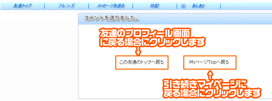 | Step 5 | 『コメントを送りました。』画面が表示されました。これで送信は完了です。 |